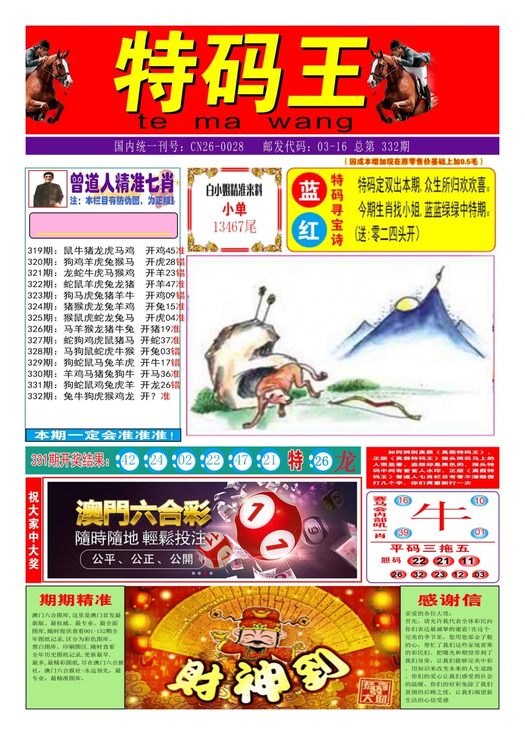 332期:⑨肖 【牛猴蛇鼠羊猪马龙虎】 开??准